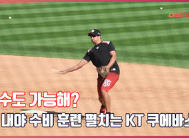 ‘야수도 가능해?’ 내야 수비 연습하는 KT 쿠에바스[O! SPORTS]