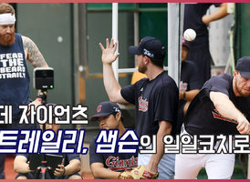롯데 샘슨,'팀 에이스 스트레일리에게 코치 받으며'[O! SPORTS]