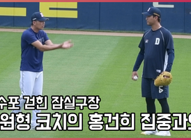 [O! SPORTS]’방수포 걷힌 잠실구장 그라운드’ 김원형 코치의 홍건희 ‘집중과외’