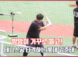 ’방망이 거꾸로 잡고!’ 테니스공 타격하는 롯데 김준태[O! SPORTS]