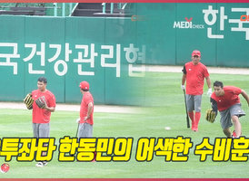 우투 좌타 한동민의 어색한 수비훈련 [O! SPORTS]