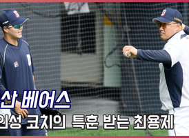 두산 조인성 코치의 특훈을 받는 최용제[O! SPORTS]
